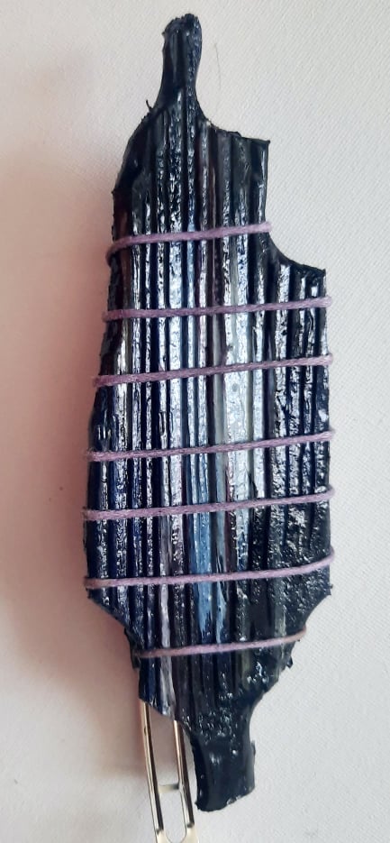Malovaný a nalakovaný kus dřeva na sponě o velikosti 3,5 cm