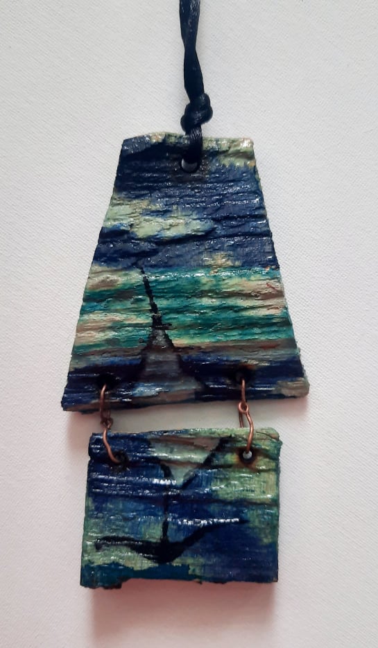 Kus surového dřeva, lehce opracované, namalované a nalakované