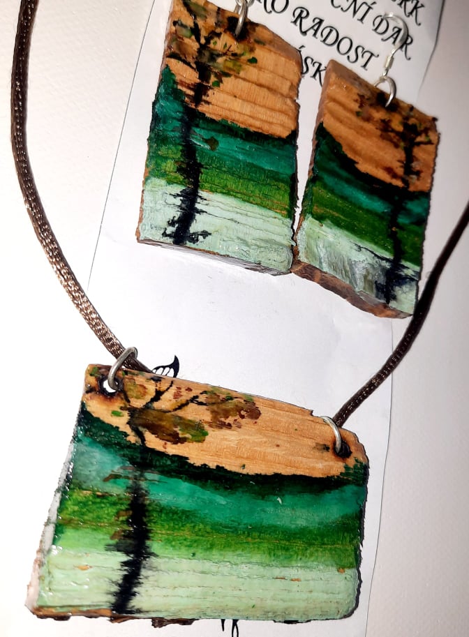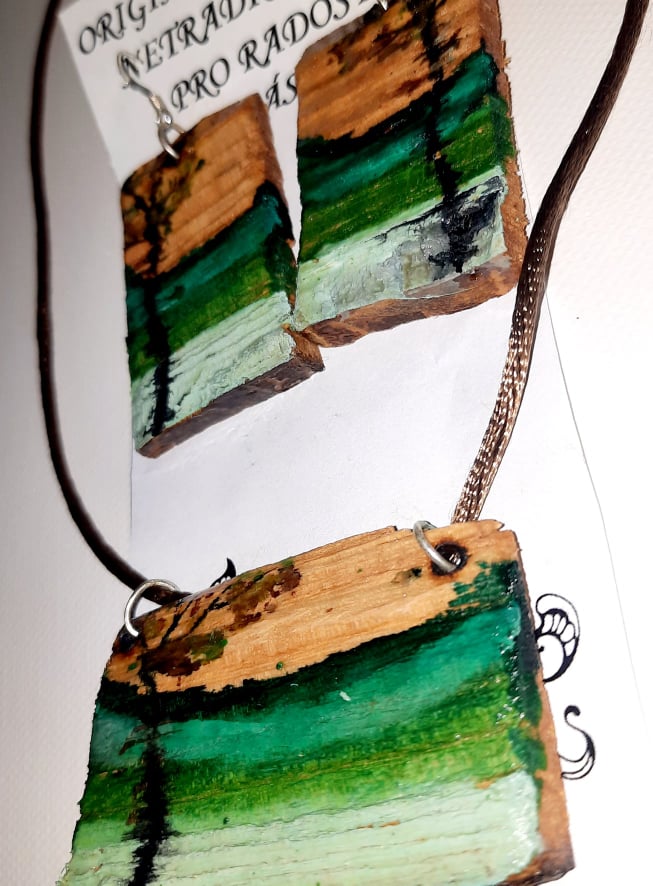Malované surové dřevo akrylem, lak
