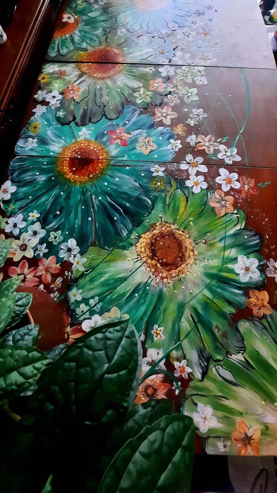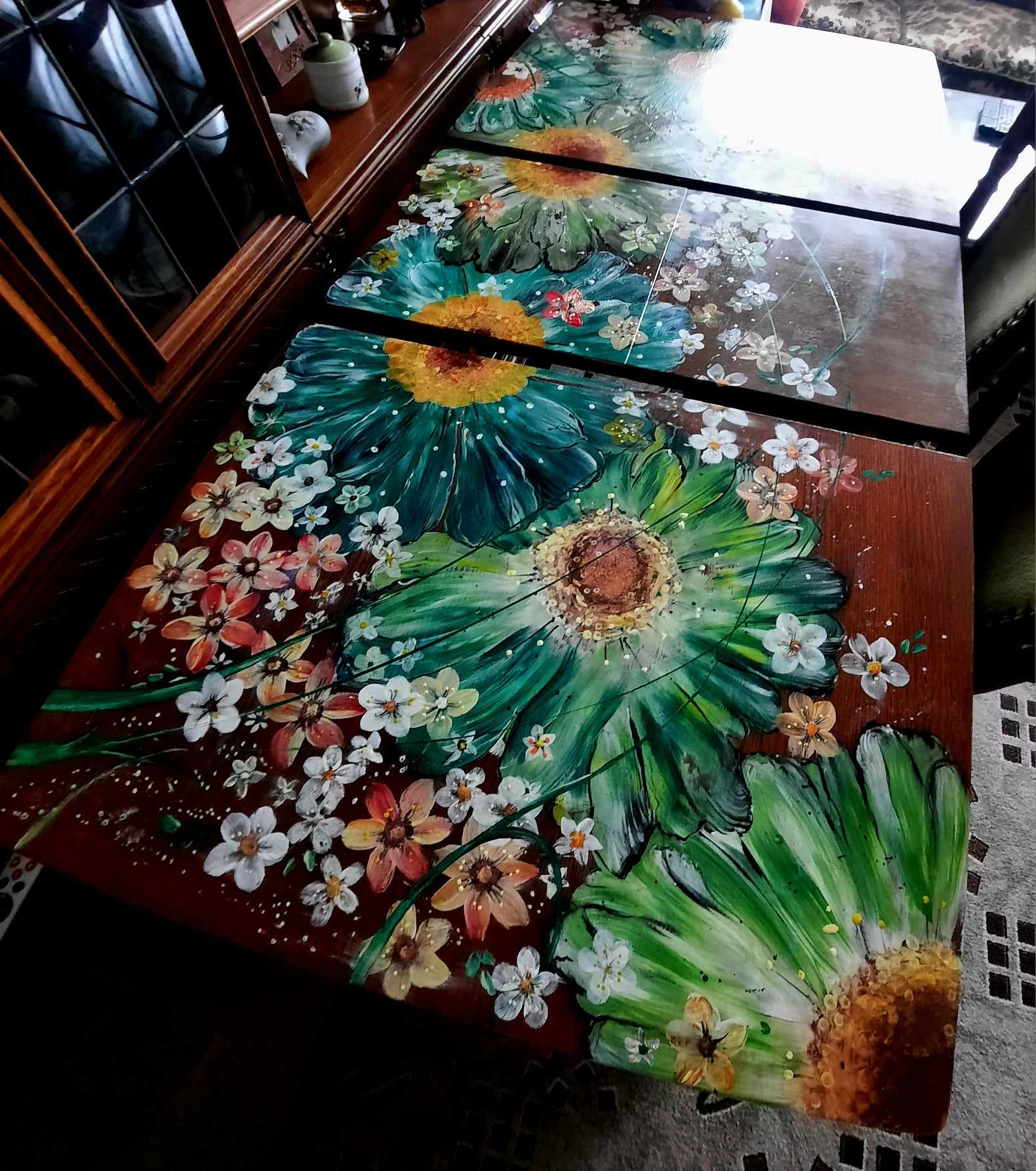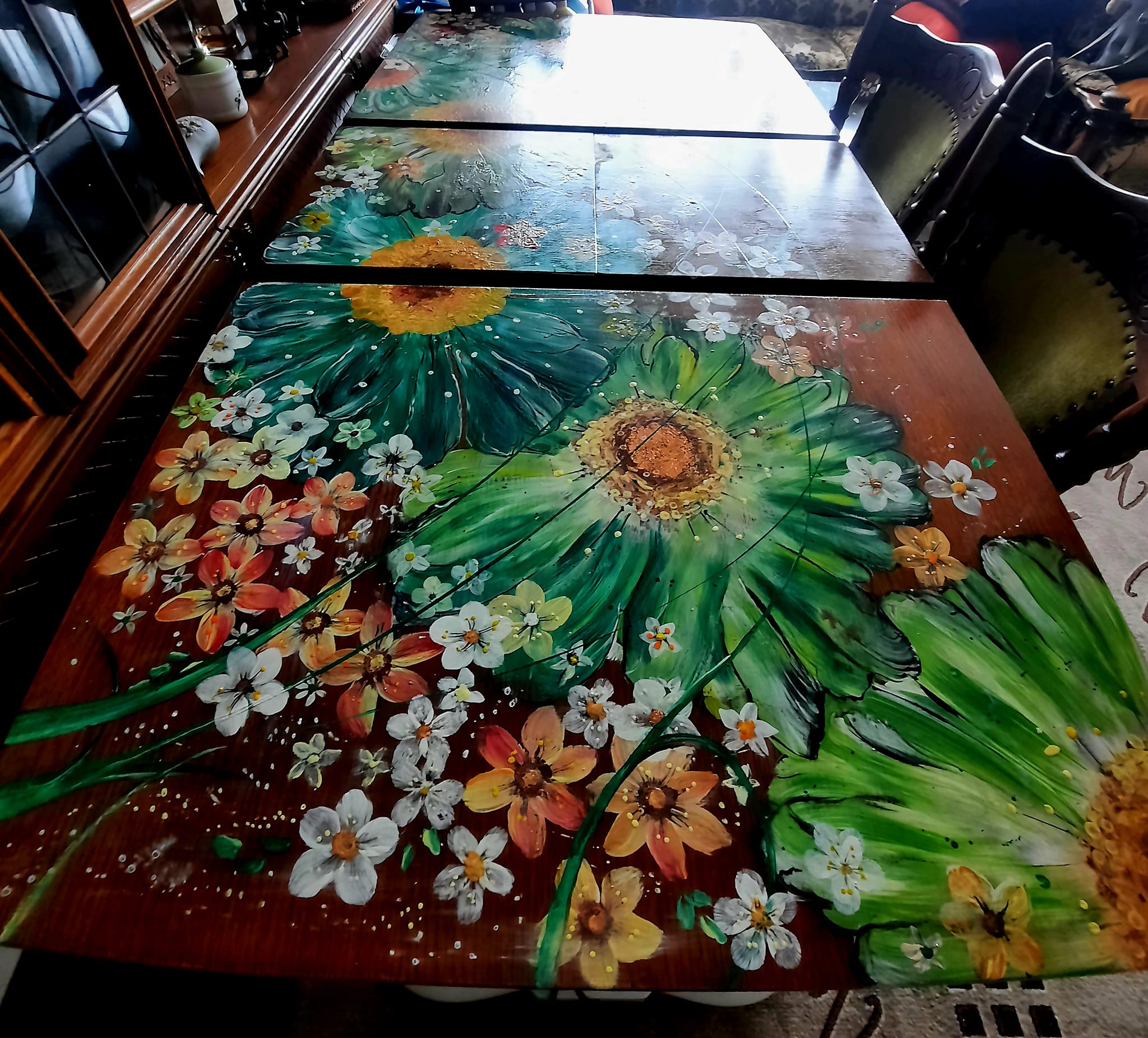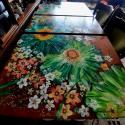 Renovace, malování na stůl, nový kabát ošoupanému jídelnímu stolu, daly velké květy, malované s lásko.